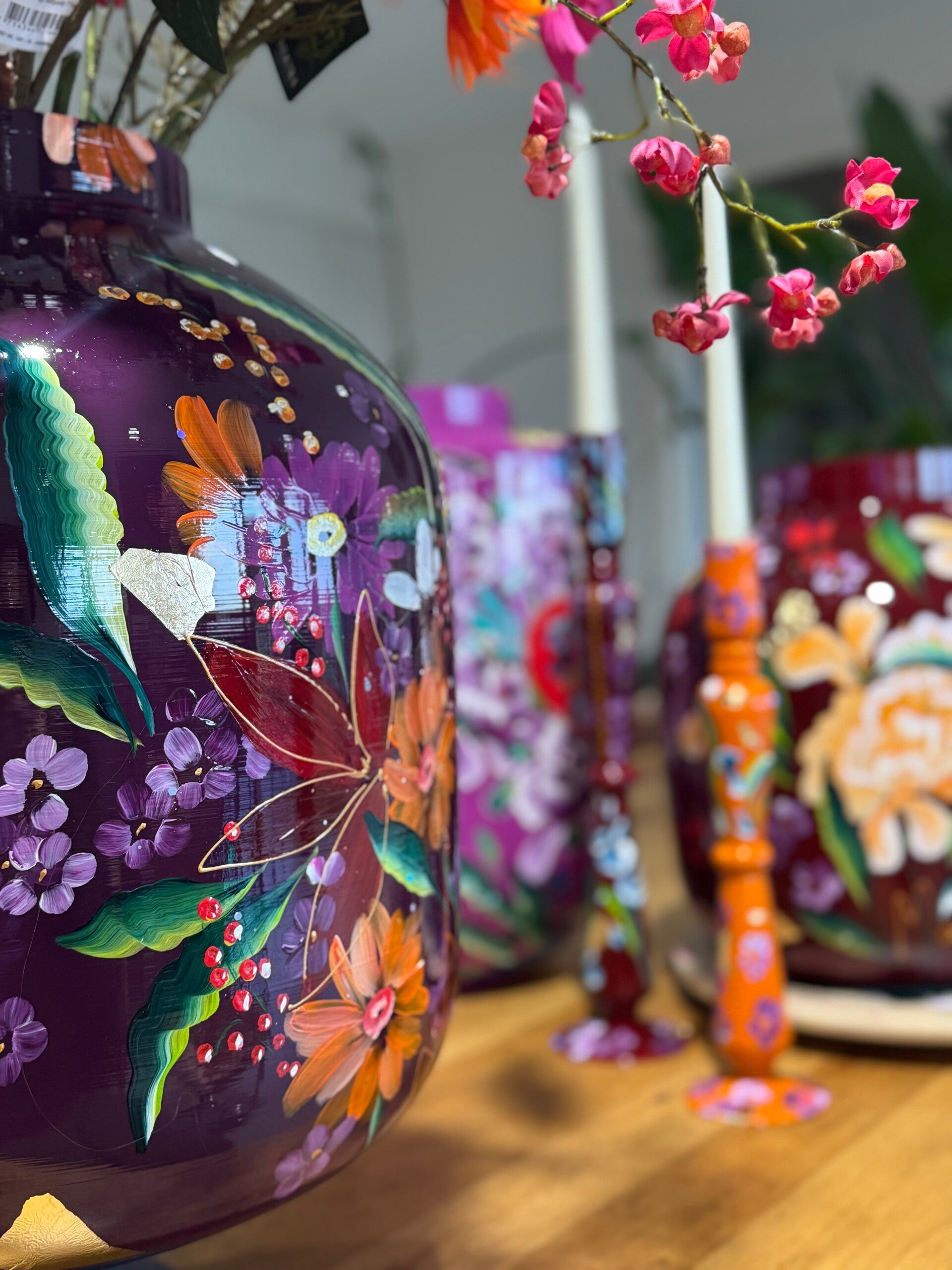Unieke handbeschilderde vazen, lampvoeten, panters en nog veel meer geweldige objecten.